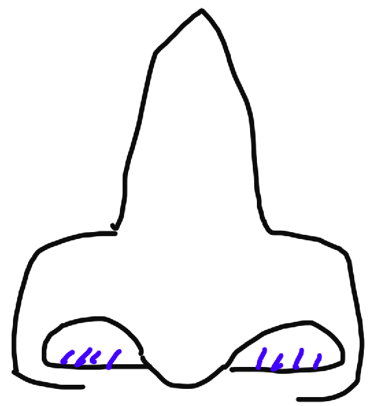 ※イメージ図 青部分の入り口付近のみ脱毛を行いそれ以外は鼻毛のフィルター機能を維持するためにやっていません。