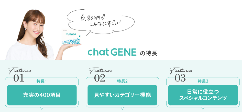 また、chatGENEが提供する400項目の遺伝子検査は、健康リスクや体質に関する幅広い情報を得ることができるので、決して表面的な検査ではありません。そのため、低価格でも十分に価値のあるデータが得られる可能性があります。
