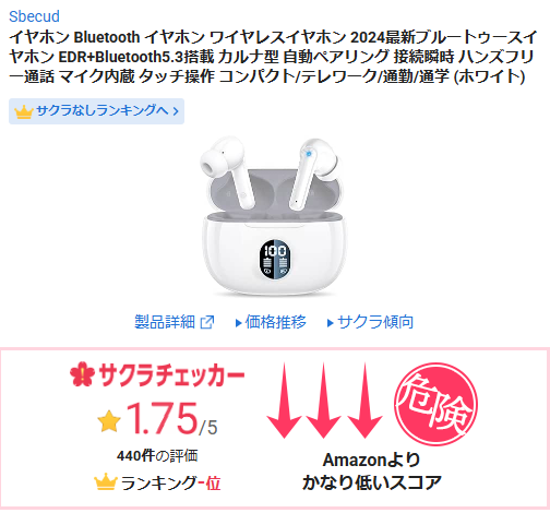 ちなみに、サクラチェッカーでサクラレビューが多いとされている商品の評価はこのような形になります。