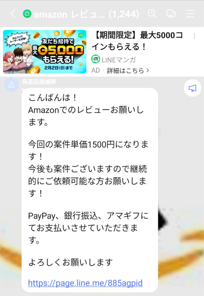 LINEのオープンチャットで見かけたサクラレビューの募集案内