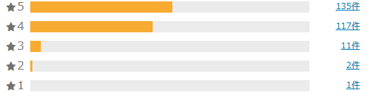 (サクラレビューで5つ星が増え、そのレビューを信じて購入した人が、実際の評価とは違ったので1つ星評価をつけることが多い。そのため、サクラレビューの多い商品は、5つ星と1つ星の多いコの字評価になることが多い)